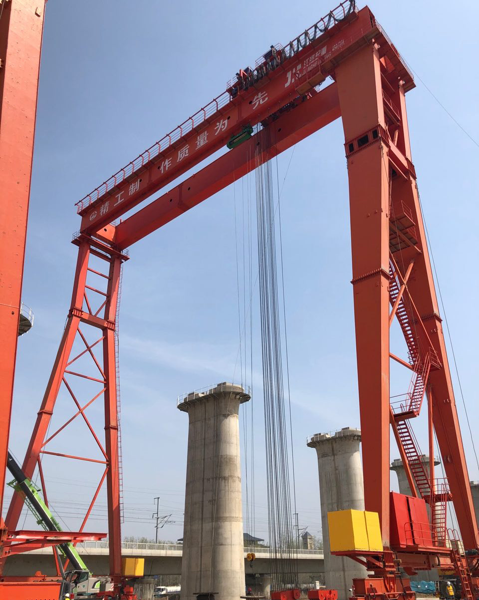 提梁機(jī)是一種為橋梁建設(shè)而專門設(shè)計(jì)的一種門式起重機(jī),提梁機(jī)既可兩臺(tái)配合抬吊預(yù)制梁,也可以單臺(tái)起重機(jī)配雙吊具起吊預(yù)制梁,主要用于將預(yù)制梁從制梁臺(tái)提吊至存梁臺(tái)位,預(yù)制梁養(yǎng)護(hù)完成后將其從存梁臺(tái)位吊運(yùn)到運(yùn)梁車上。