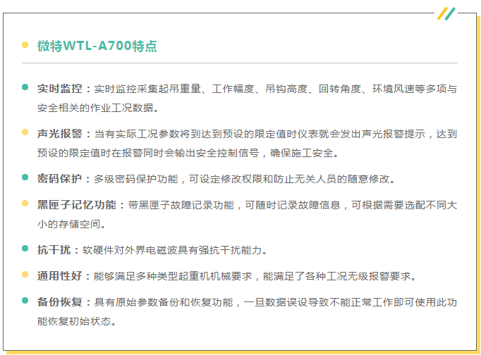 微特作為起重機安全監(jiān)控管理系統(tǒng)品牌的領導者,一直致力于為客戶提供有價值的產(chǎn)品和服務。希望通過我們的產(chǎn)品將起重機安全事故率降到最低,為客戶提供更加可靠的安全管理解決方案。