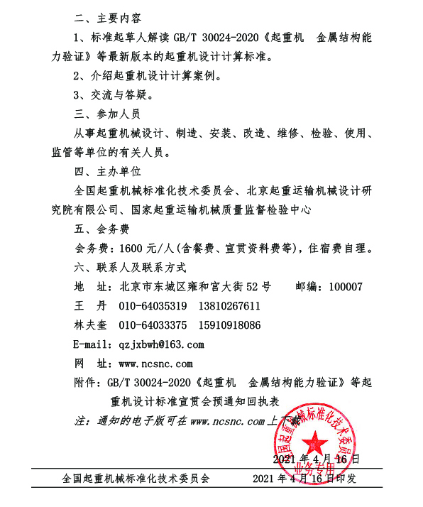 此次宣貫會主要圍繞標準起草人解讀 GB/T 30024-2020《起重機 金屬結構能 力驗證》等最新版本的起重機設計計算標準,介紹起重機設計計算案例以及交流與答疑三個部分開展。凡從事起重機械設計、制造、安裝、改造、維修、檢驗、使用、 監管等單位的有關人員均可參會。