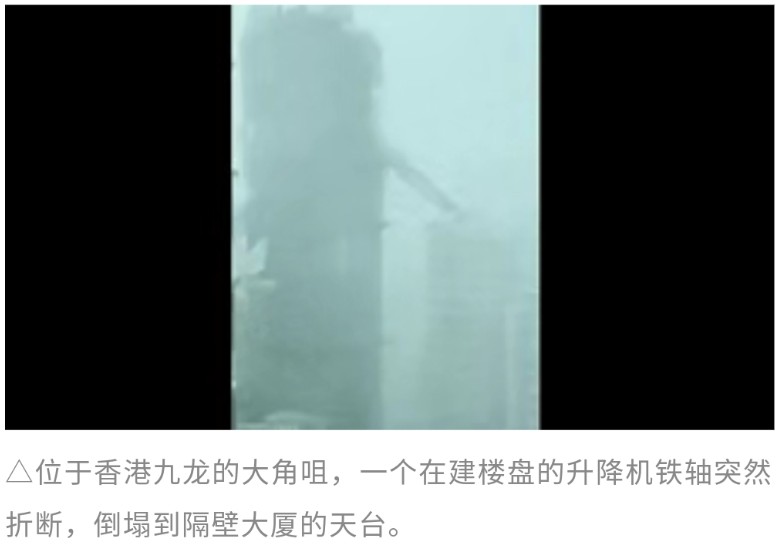位于香港九龍的大角咀,一個(gè)在建樓盤的升降機(jī)鐵軸突然折斷,倒塌到隔壁大廈的天臺(tái)。警方接到報(bào)警后迅速到場(chǎng),疏散了大廈內(nèi)的40名居民,所幸暫時(shí)無人受傷。
