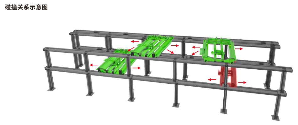 橋機工作時需要在軌道上來回移動吊運貨物,大部分廠房橋機軌道上都會采用多機配合作業。橋機之間難免會發生碰撞,而機械限位防撞預警距離太短,年久失修都會導致相鄰、上下層軌道之間橋機作業時發生碰撞,導致事故發生。
