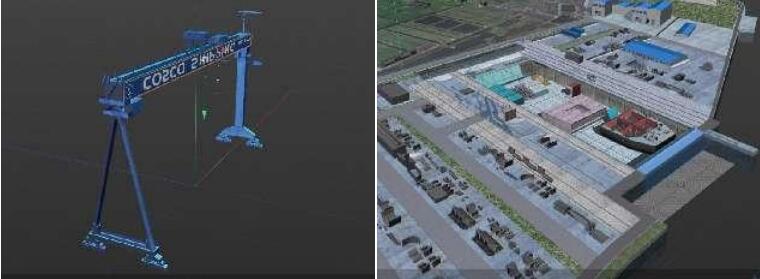 將船塢場地相關聯吊機的軌道及其軌道間距關系按照1:1建立數學模型,其準確、清晰地反映出各軌道在船塢空間的位置關系。