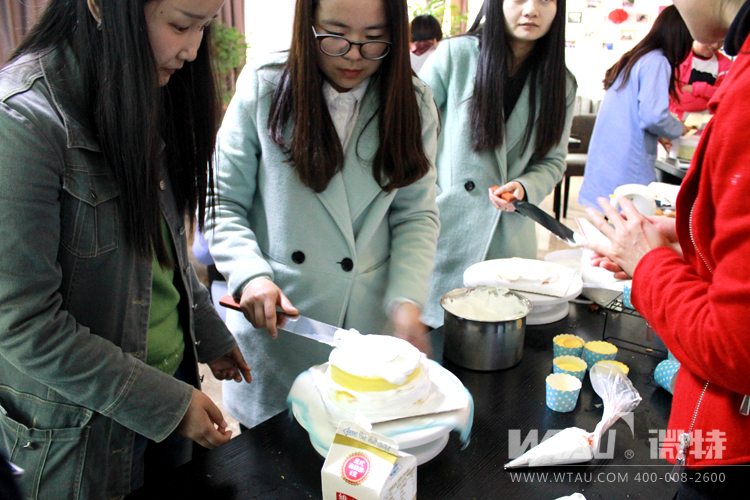 在老師的指導下大家共同努力,親手做出了精美的蛋糕??粗@些甜蜜的作品,眾女神還特邀請男神共同品嘗,讓男神們在這個特殊的“女人節”,不嫉妒、不抱怨,品嘗甜蜜!